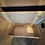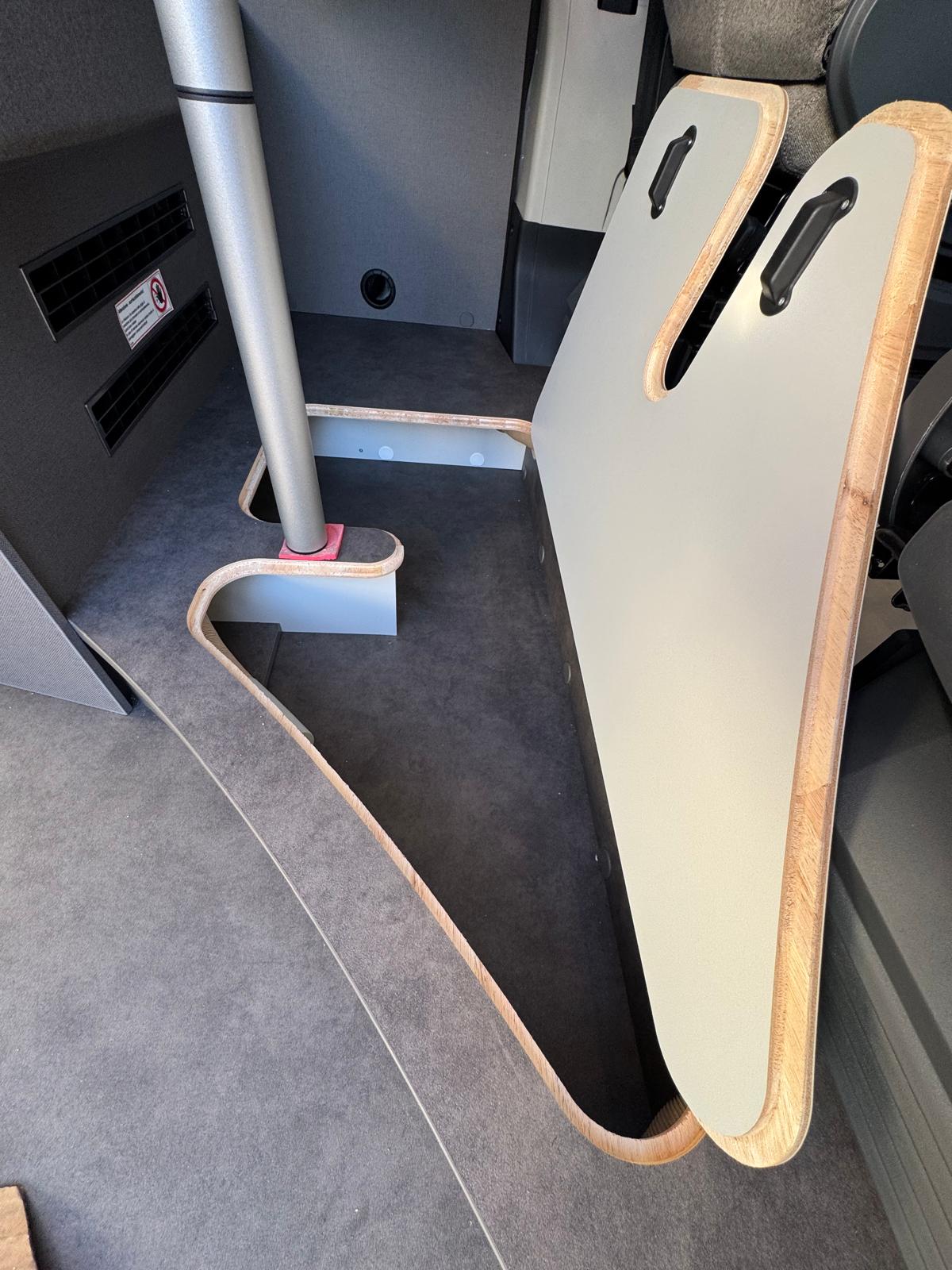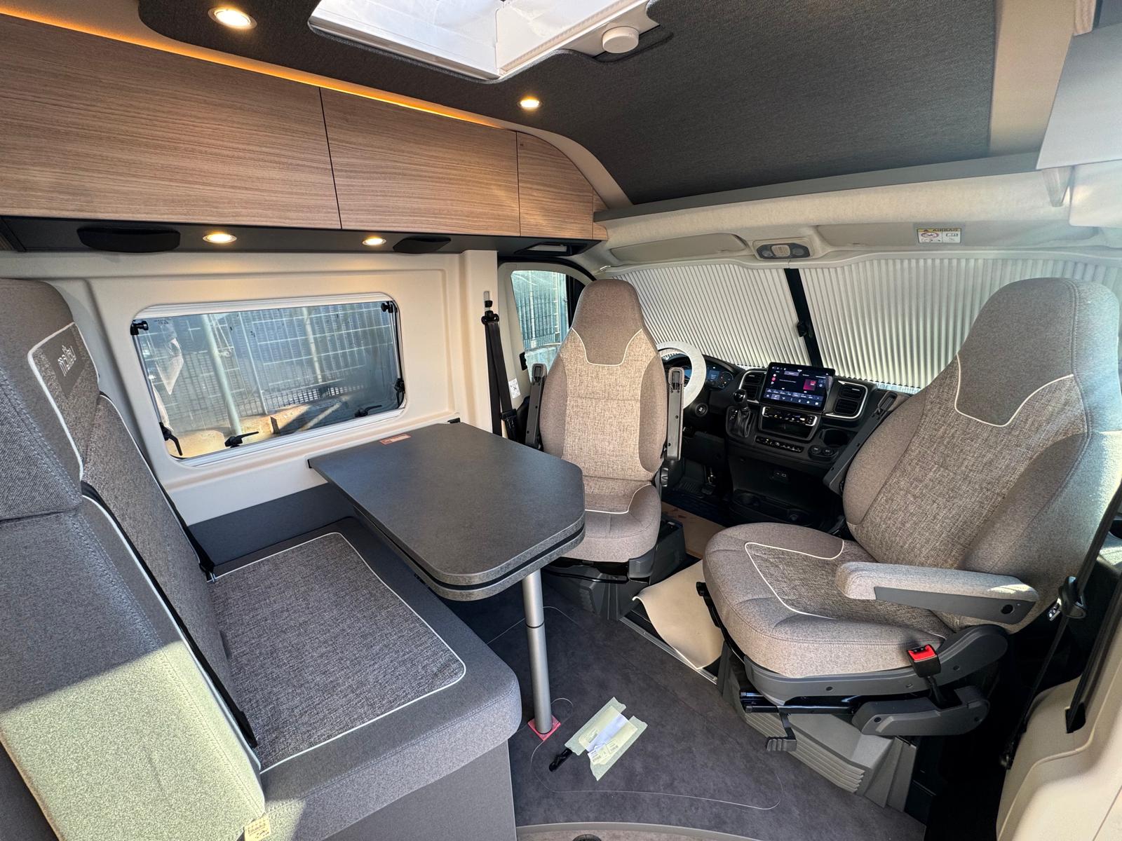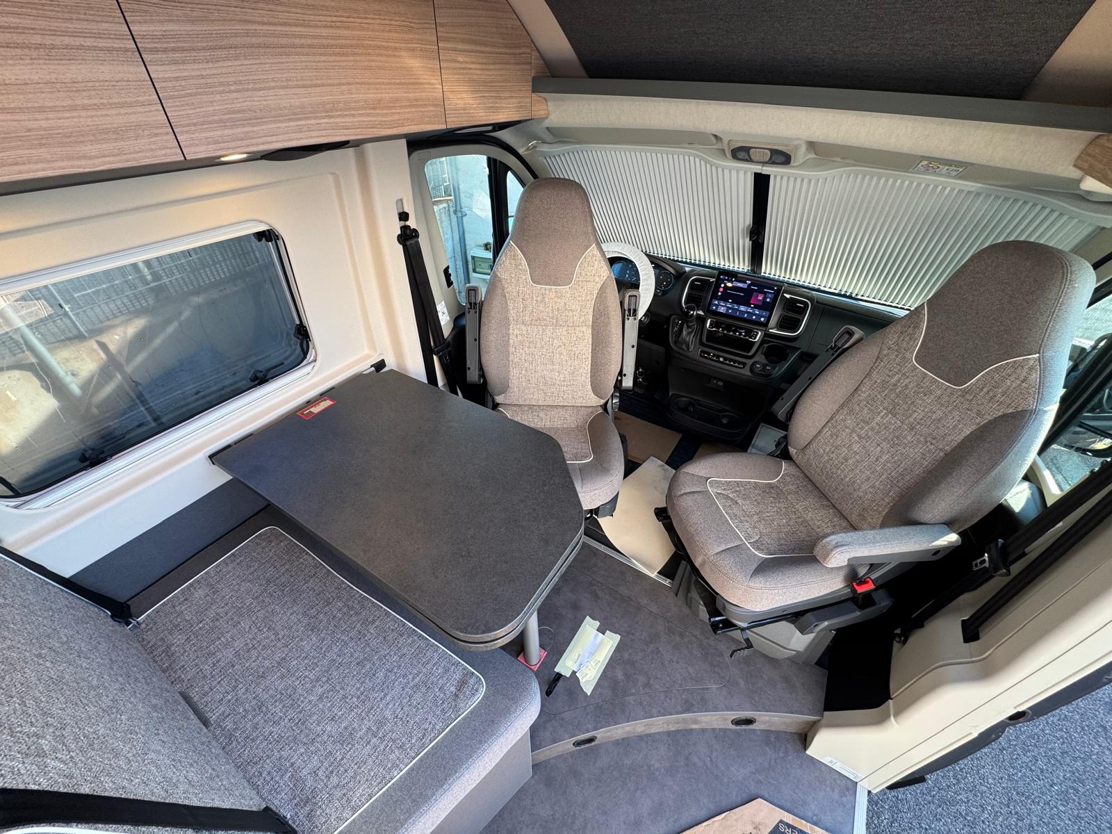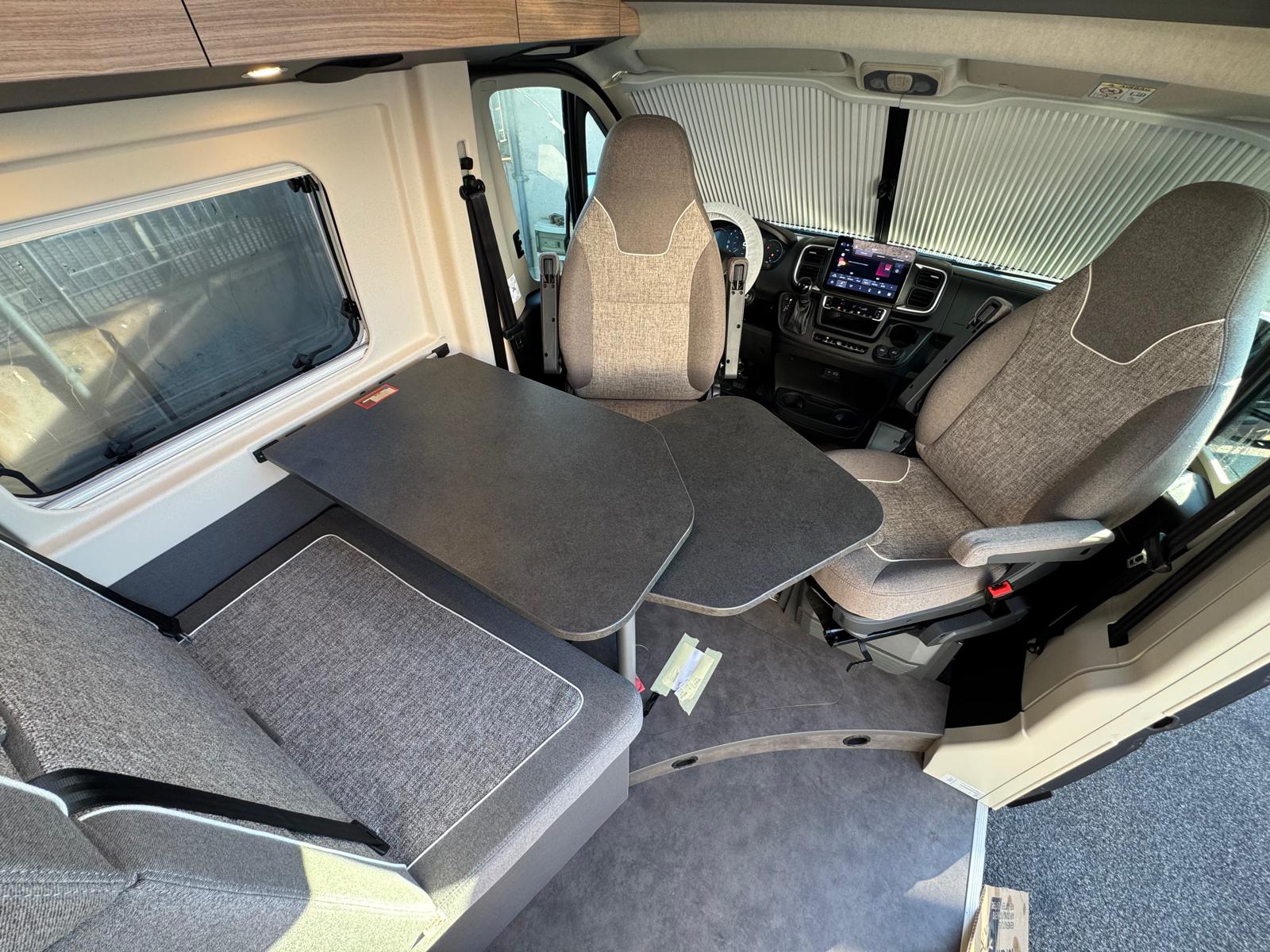 • Sedili pilota e braccioli (imbottiti) rivestiti nello stesso tessuto della dinette